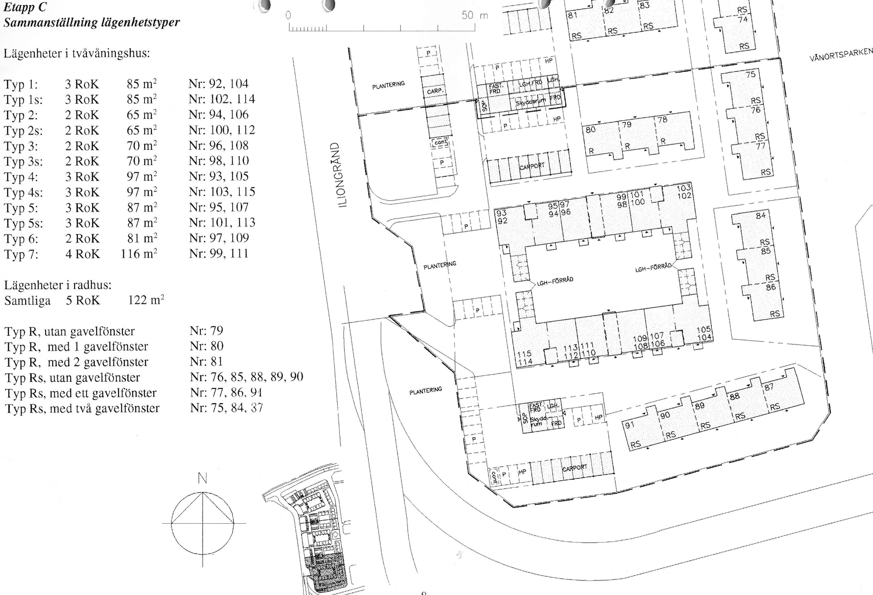 Nedan länkar till ritningar för respektive lägenhet och radhus inom området.