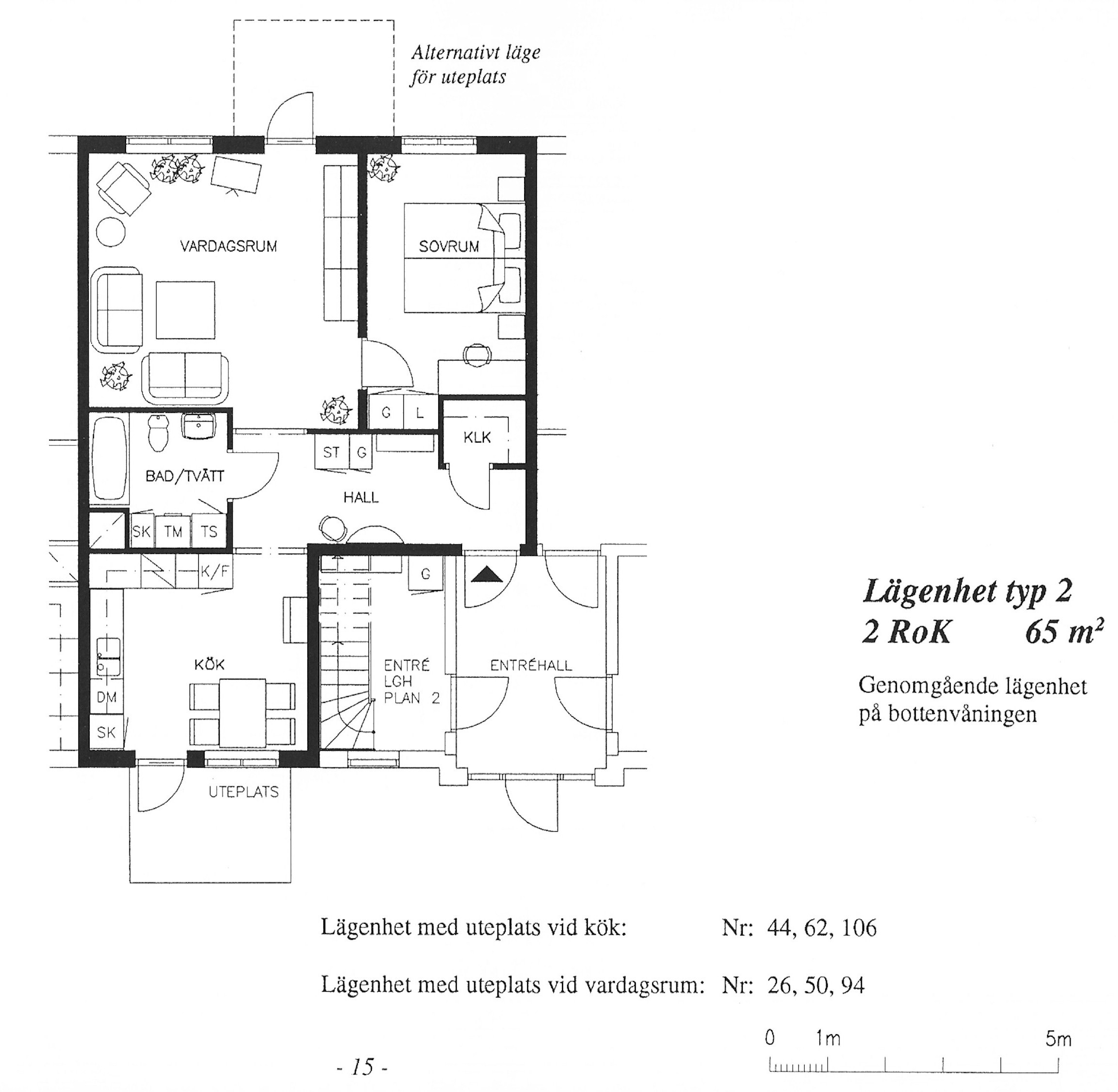 2 Rum o Kök 65* m² typ 2s (genomgående lägenhet, bottenvåning) [3D-modell]