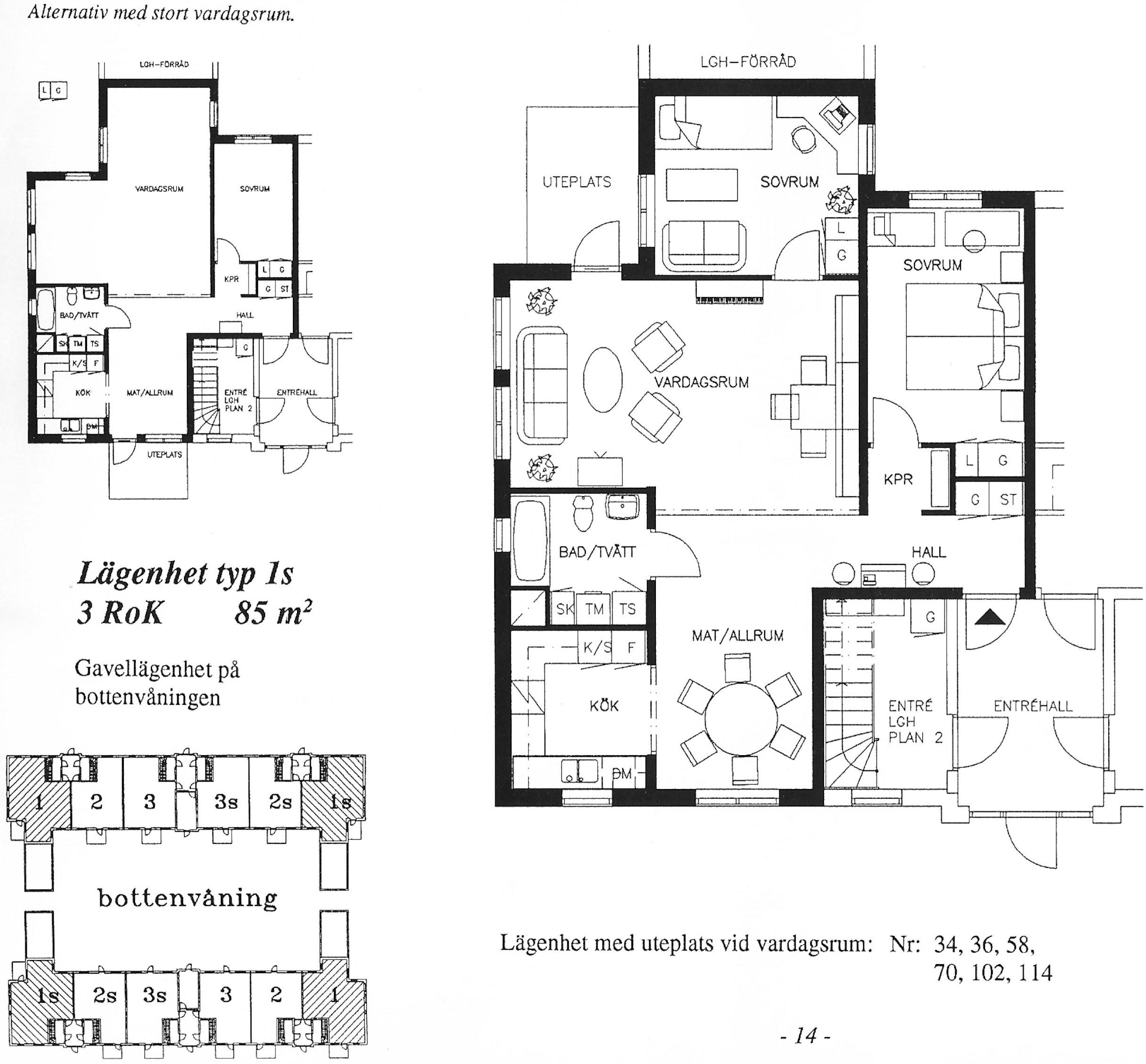 För överskådlighet finns områdesritningar med lägenhetsnummer inskrivna.